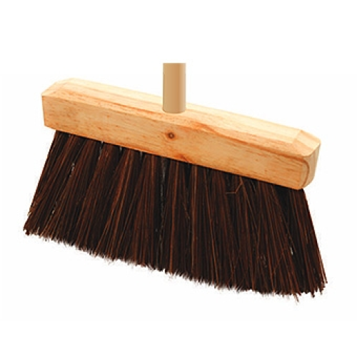 Vassoura com base e cabo de madeira. Ideal para limpeza do dia a dia em ambientes internos e externos.